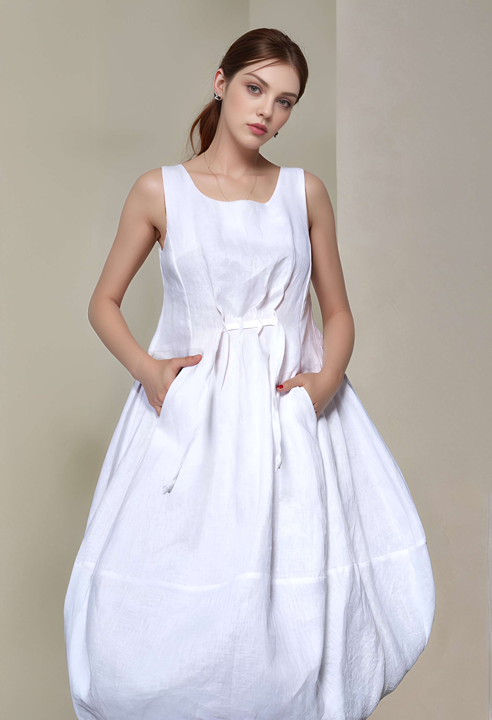 Sleeveless Linen Midi Dress CAEN Boho Balloon